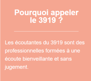 Depuis 1992, un numéro d’appel national, est mis en place : 3919. Ce numéro est entièrement dédié à l‘écoute et à l’orientation des femmes victimes de violence. Les appels sont gratuits et anonymes, avec un service accessible 24h/24 et 7j/7.